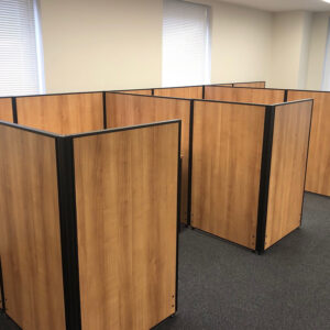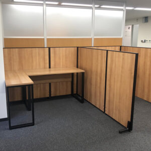 スタッフコメント お客様の機密情報を守りつつ、オフィスに温かみを与えるために木目調のローパーテーションを採用しました。パーテーションの高さを調整することで、適度なプライバシーを確保しながらも、閉塞感を軽減し、快適な執務環境を実現しています。また、サイドテーブルを設置したことで、書類や小物を置くスペースが確保でき、デスク周りがすっきりと整理されました。木目調の温もりある雰囲気の中で、集中して業務に取り組むことができる、理想的なオフィスレイアウトを提供できたと自負しております。