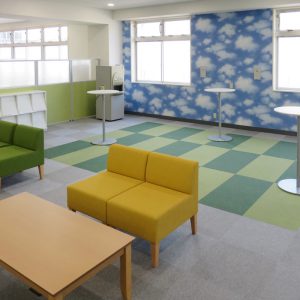「立って使える休憩室に…」というご要望でしたので、爽やかなホワイトのラウンジテーブルを設置。