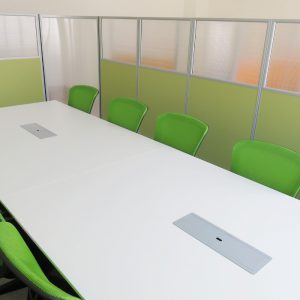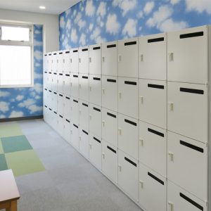 また、デスクにはフリーアドレステーブルを使用し、個人ごとにノートPCやタブレットPC等のモバイル端末や、ファイルや書類等を保管して置くのに最適なパーソナルロッカー(鍵付きロッカー)を設置し、フリーアドレスな環境を整備したい。