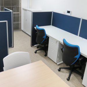| 弊社からのご提案 | 各自が業務に集中できるよう、またデスクに隣接する家具以外の配置にも影響が無いよう、パーテーションでデスクを囲い、1名あたりの空間を明確にいたしました。 |