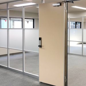 スタッフコメント お客様の大切な顧客情報を守るために、セキュリティー面にも細心の注意を払いました。執務室と会議室を区切るアルミパーティションには、ランダムテンキー錠を付けることで、許可された人以外は立ち入ることができません。また、個別ブースを設けることで、お客様の情報が外部に漏れることを防ぎつつ、スタッフが集中して業務に取り組める環境を整えました。お客様の信頼を得るためにも、情報管理の徹底は欠かせません。当社ではお客様のニーズに合わせて、セキュリティーと利便性を両立した空間づくりをご提案いたします。