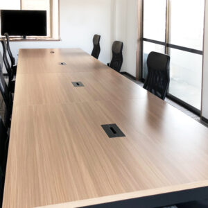 流行の黒脚木目天板デスクを採用し、オシャレな会議室に。