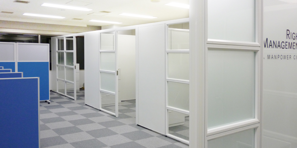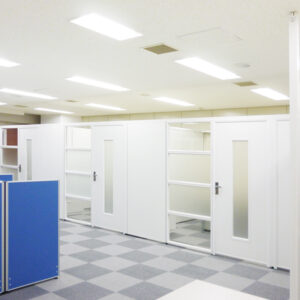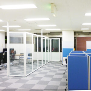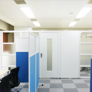 施工期間 非公開 請負箇所 室執務室/会議室/受付/応接室/収納スペース等 施工内容 オフィス家具/パーテーション/内装/配線/電話等