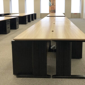 スタッフコメント お客様のご要望に合わせて、木目調を基調としたオフィス家具を提案し、施工させていただきました。木目天板のデスクを採用することで、エステティックサロンにふさわしい温かみのある雰囲気を演出しています。また、デスクのブラックフレームとワゴンのブラックを合わせることで、全体的な統一感を生み出しました。木目調とブラックの組み合わせは、落ち着きと洗練された印象を与え、お客様に安心感と高級感を感じていただけるでしょう。私たちは、お客様のご要望をしっかりとお伺いし、豊富な経験と知識を活かして、最適なオフィス空間をご提案いたします。