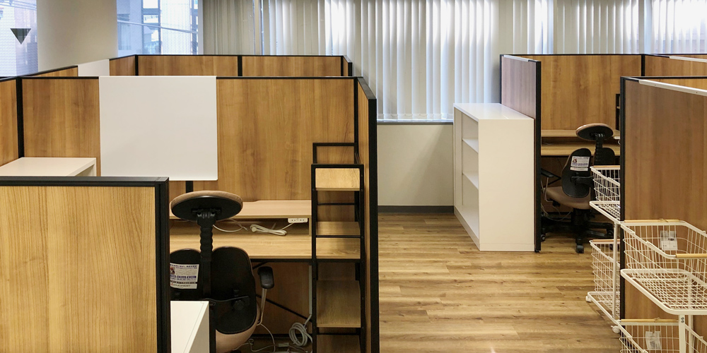 弊社からのご提案 個人スペースをしっかり確保し、パーテーションで仕切る事で仕事に集中できるブース型空間を提案致しました。