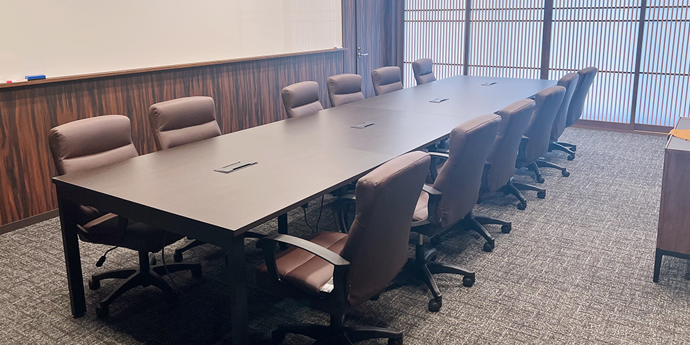 スタッフコメント お客様のコールセンター業務を支える大切な空間だからこそ、スタッフの方々が集中して打ち合わせができ、リラックスして過ごせるミーティングルームづくりを心がけました。限られたスペースを有効に活用し、機能性と快適性を両立させるために、お客様のニーズに合わせて最適な家具をセレクト。そこには、お客様のビジネスに寄り添い、ともに成長していきたいという私たちの思いが込められています。ミーティングルームは、単なる打ち合わせの場ではなく、アイデアが生まれ、コミュニケーションが深まる、クリエイティブな空間。そんな場所づくりを、私たちはこれからも提案し続けます。