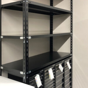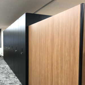 弊社からのご提案 既存什器に合う木目のローパーテーションと、ブラックの書庫を設置させて頂きました。