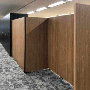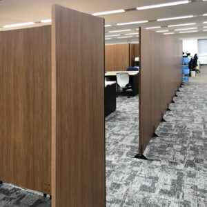スタッフコメント お客様のオフィス環境に合わせて、木目調のローパーテーションとブラックの書庫を選定しました。木目調のパーテーションは、オープンな雰囲気を維持しつつ、適度にプライバシーを確保できるデザインです。また、ブラックの書庫は、スタイリッシュな見た目ながら、大容量の収納力を備えています。これらの組み合わせにより、美しさと機能性を兼ね備えた、快適な執務空間を実現しました。お客様のニーズに合わせたオフィス家具の選定は、私たちにとって大変やりがいのある仕事です。ぜひ、貴社のオフィス環境づくりについてもご相談ください。