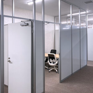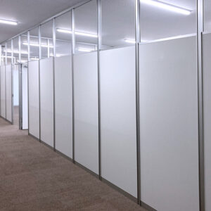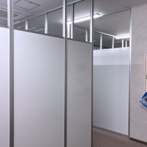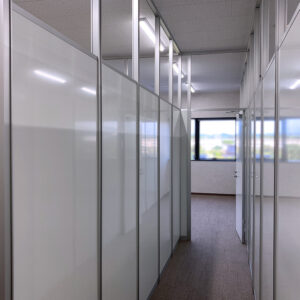 施工型パーテーションと色を合わせ統一感と広めに動線を確保し使い勝手のいい事務所を目指しました。