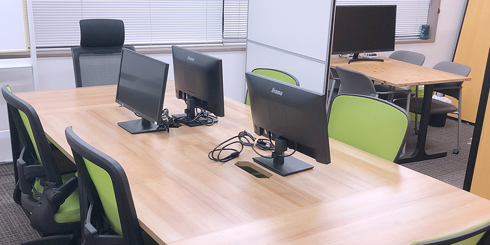 施工期間 4日間 請負箇所 執務スペース/応接スペース/会議スペース 施工内容 オフィス家具/OAフロア工事/タイルカーペット工事/電気工事