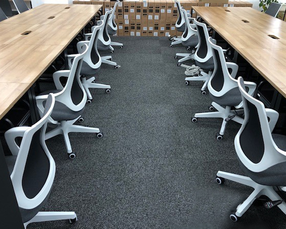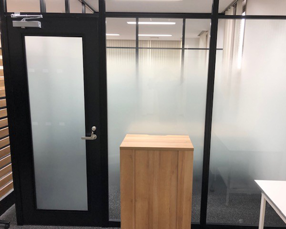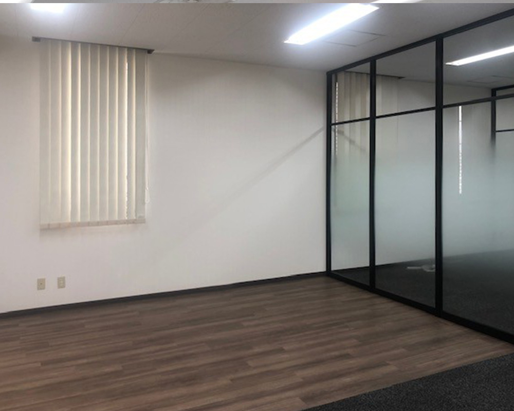 施工期間 5日間 請負箇所 エントランス、会議室、執務室 施工内容 オフィス家具、アルミパーティション、タイルカーペット貼替、サイン工事