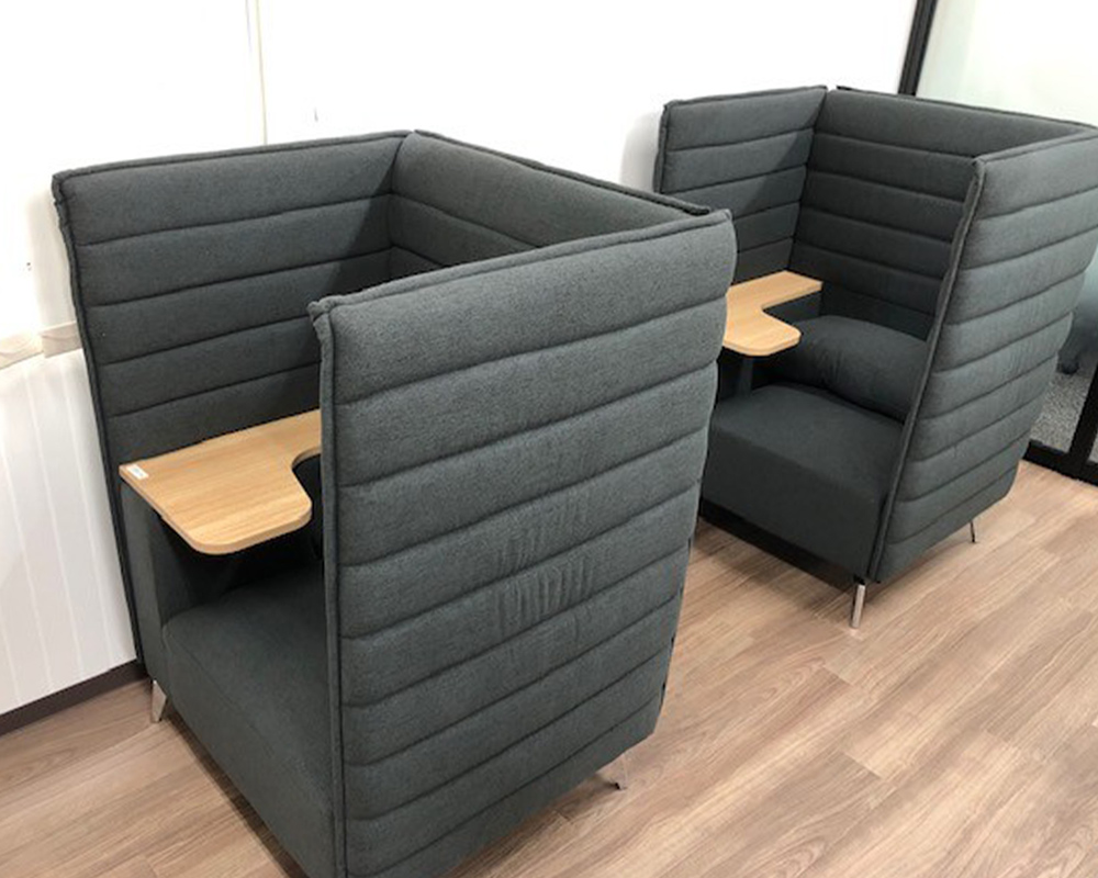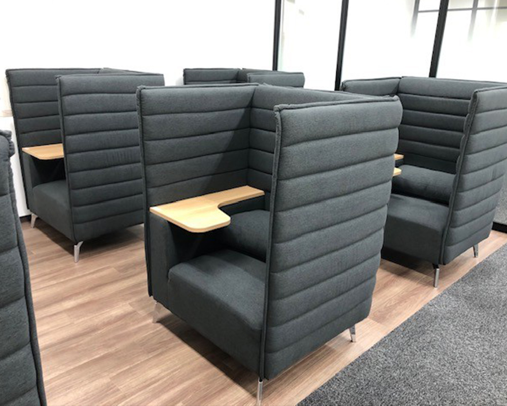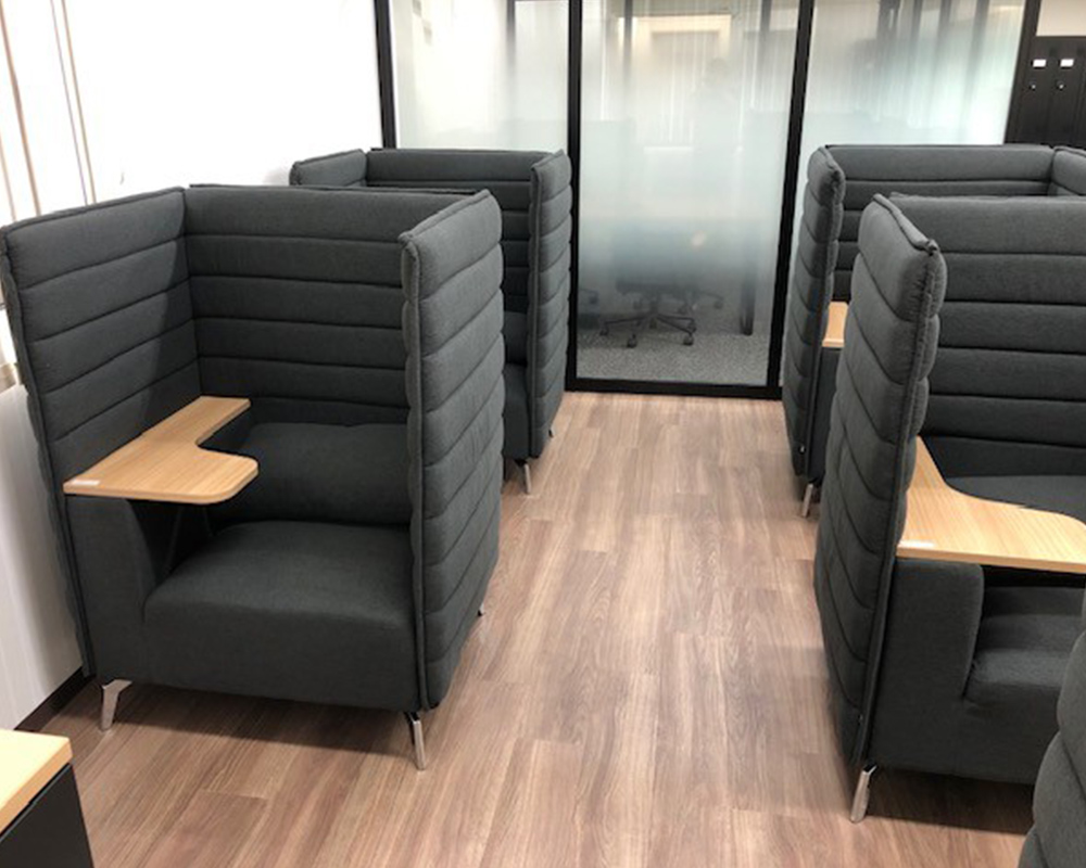 さらに、集中して作業できるソロブースを設置することで個人の空間を演出し、エリアごとに床を貼り替えることで空間にメリハリと差別化を加えました。