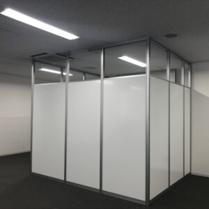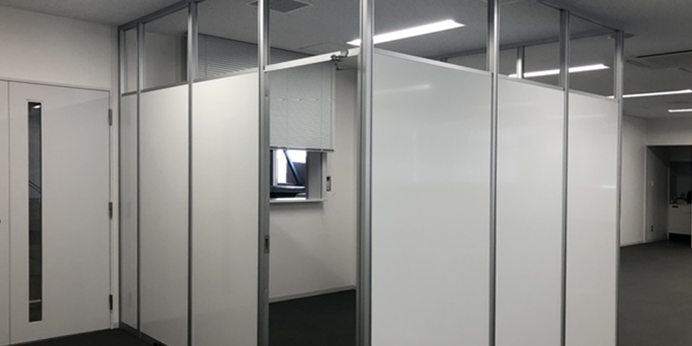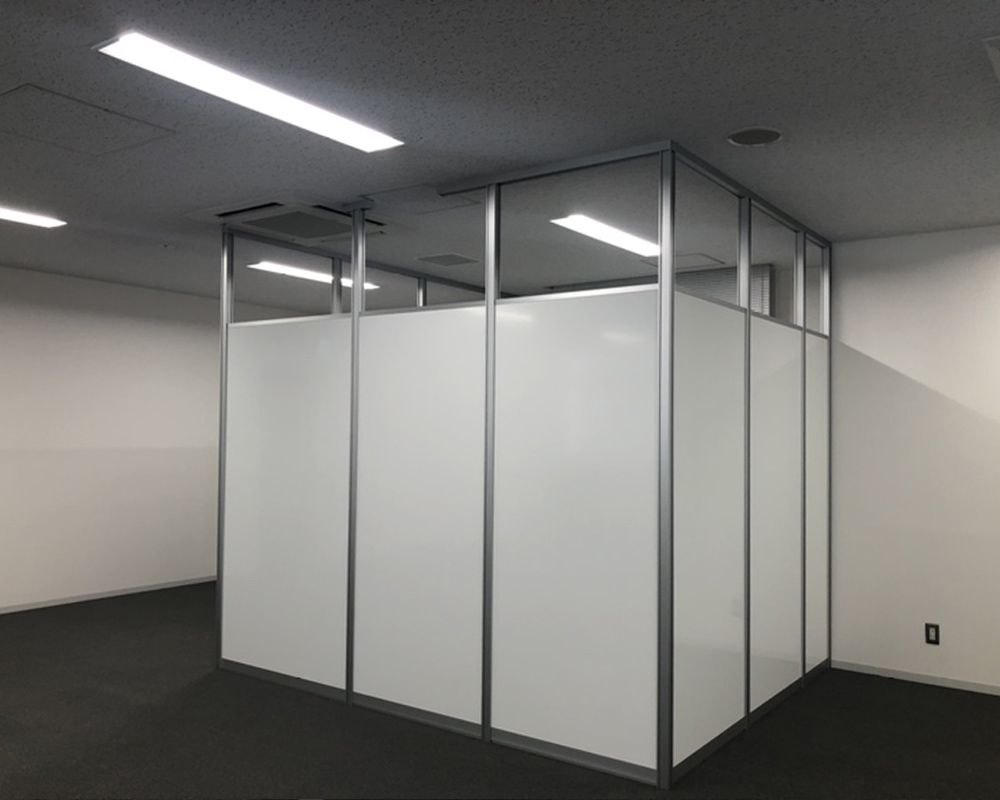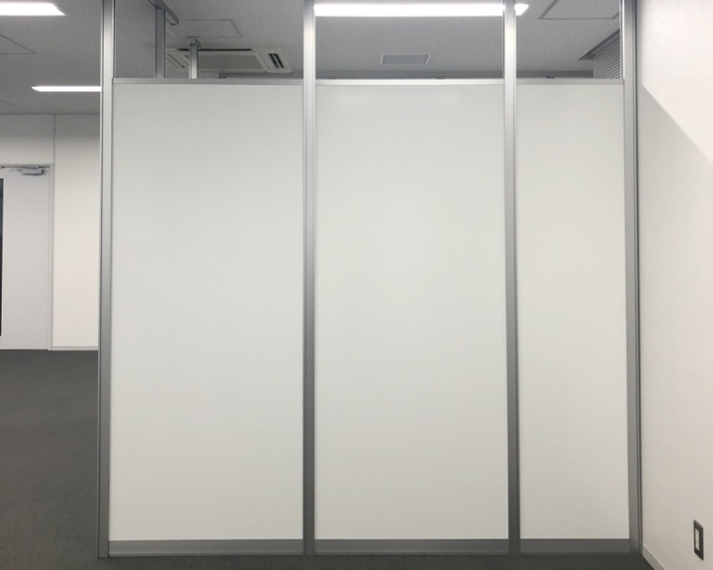 応接室については、コストを抑えつつ機能性を確保できるよう、アルミパーテーションをご提案しました。