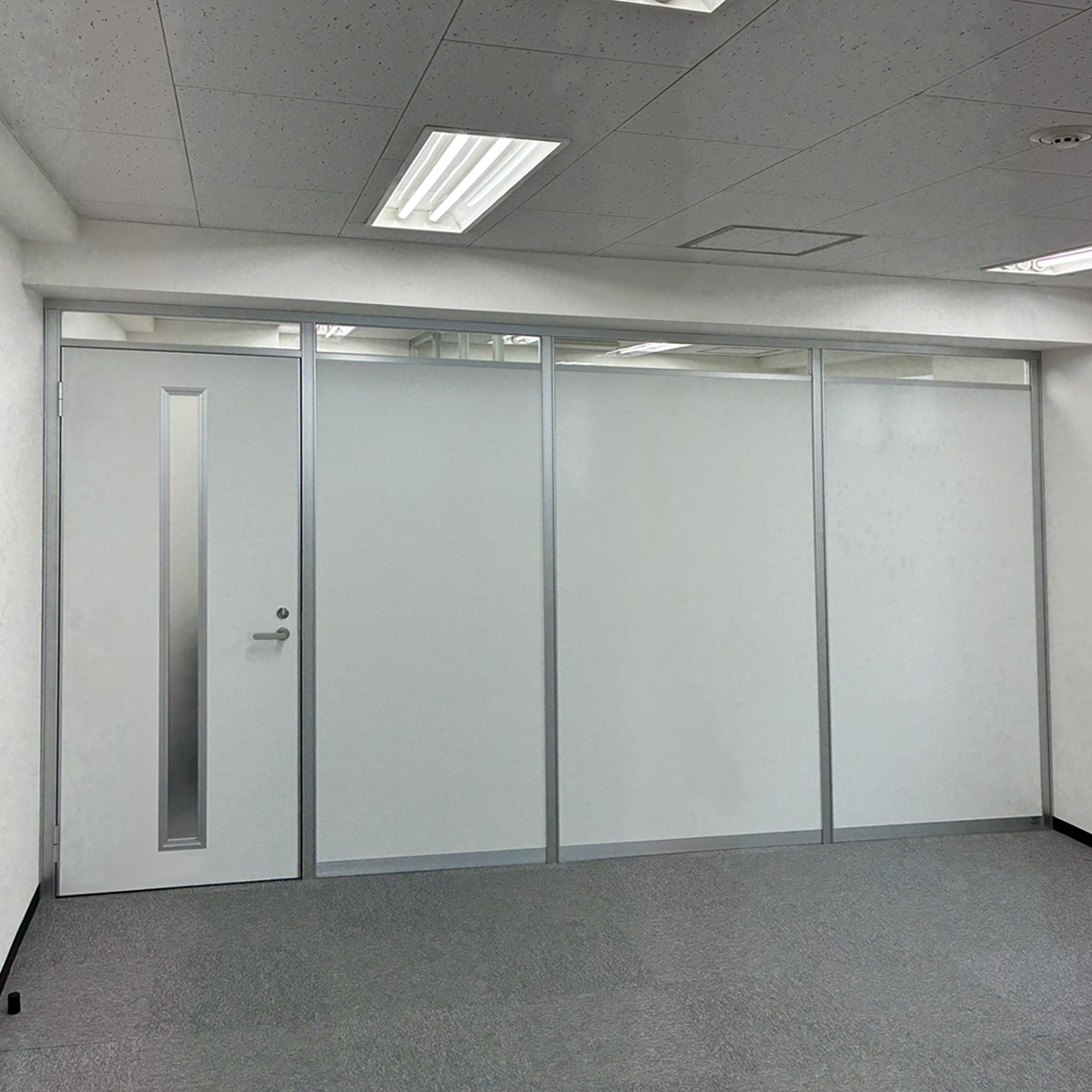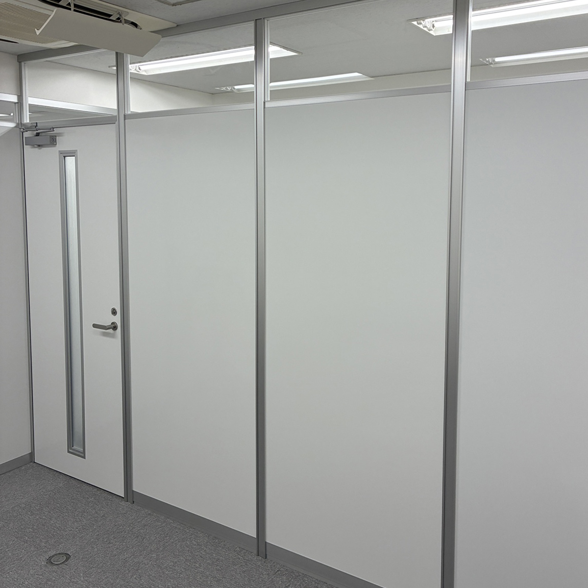施工期間 3日間 請負箇所 全体(会議室・執務室) 施工内容 アルミパーテーション工事、家具