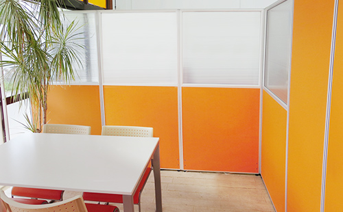 オレンジのパーテーションで、暖かく明るい空間作り。