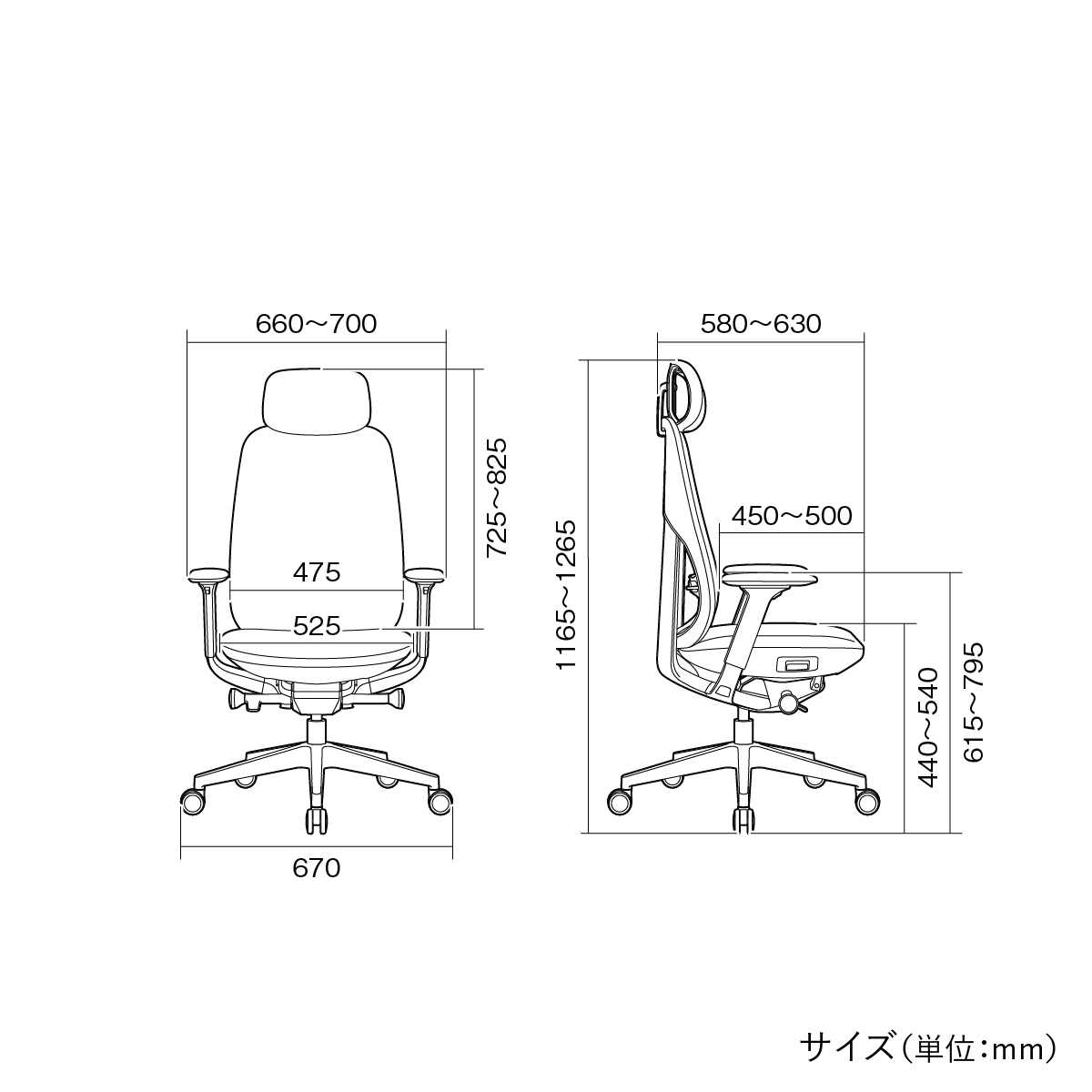 サイズ | W660×D580×H1165-1265mm 座面高:440-540mm |