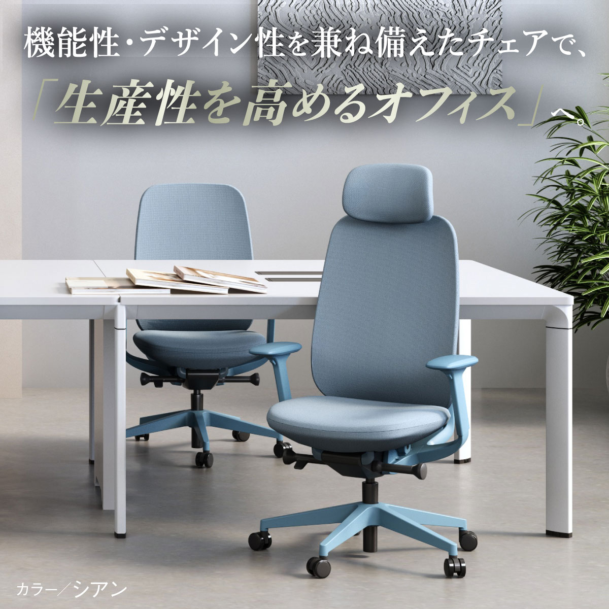 シアンとアイボリーの2色展開で、オフィス空間に彩りと洗練された印象をもたらします。