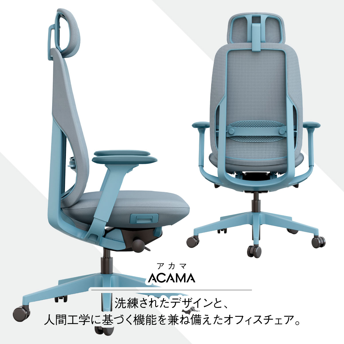 「HORN DESIGN」が手掛けた、洗練されたデザインと充実した機能を兼ね備えたメッシュチェア「ACAMA(アカマ)」。
