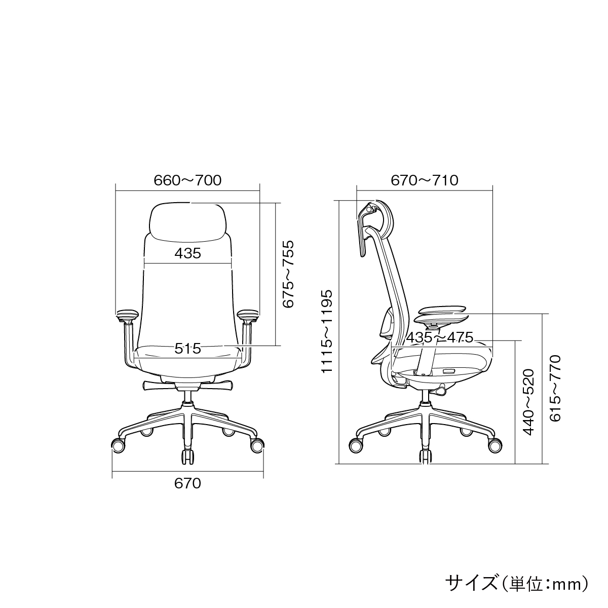 サイズ | W660×D670×H1115-1195mm 座面高:440-520mm |