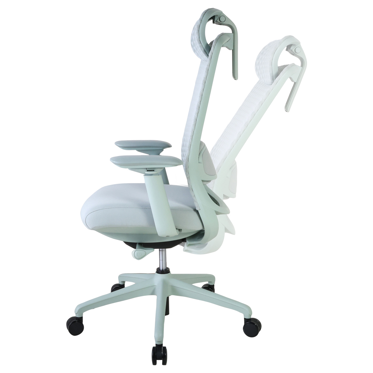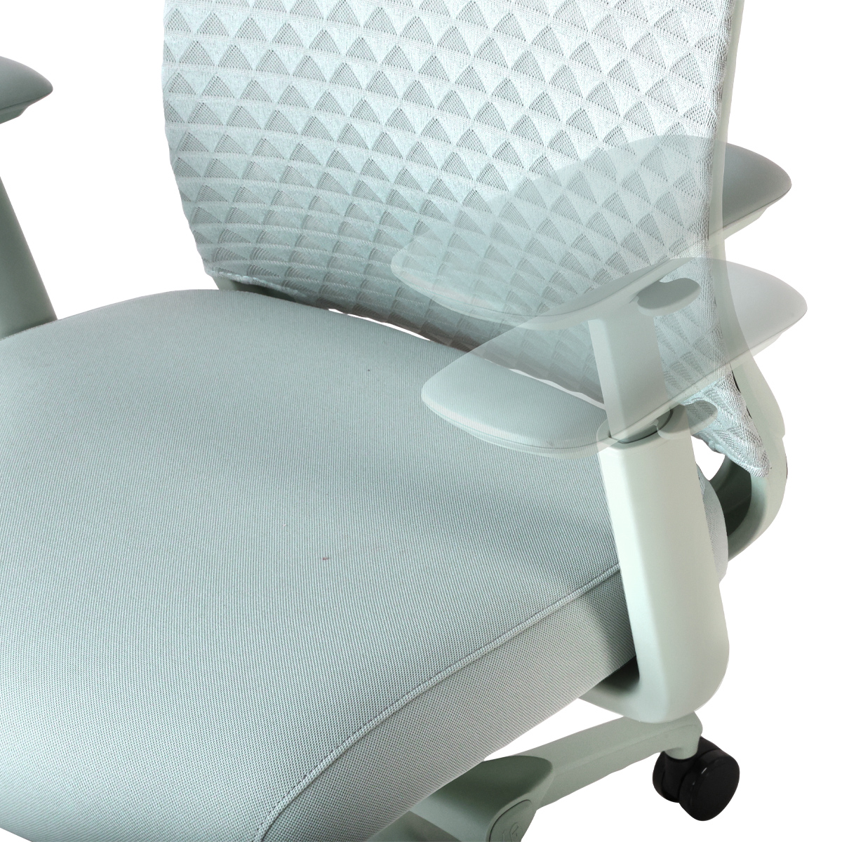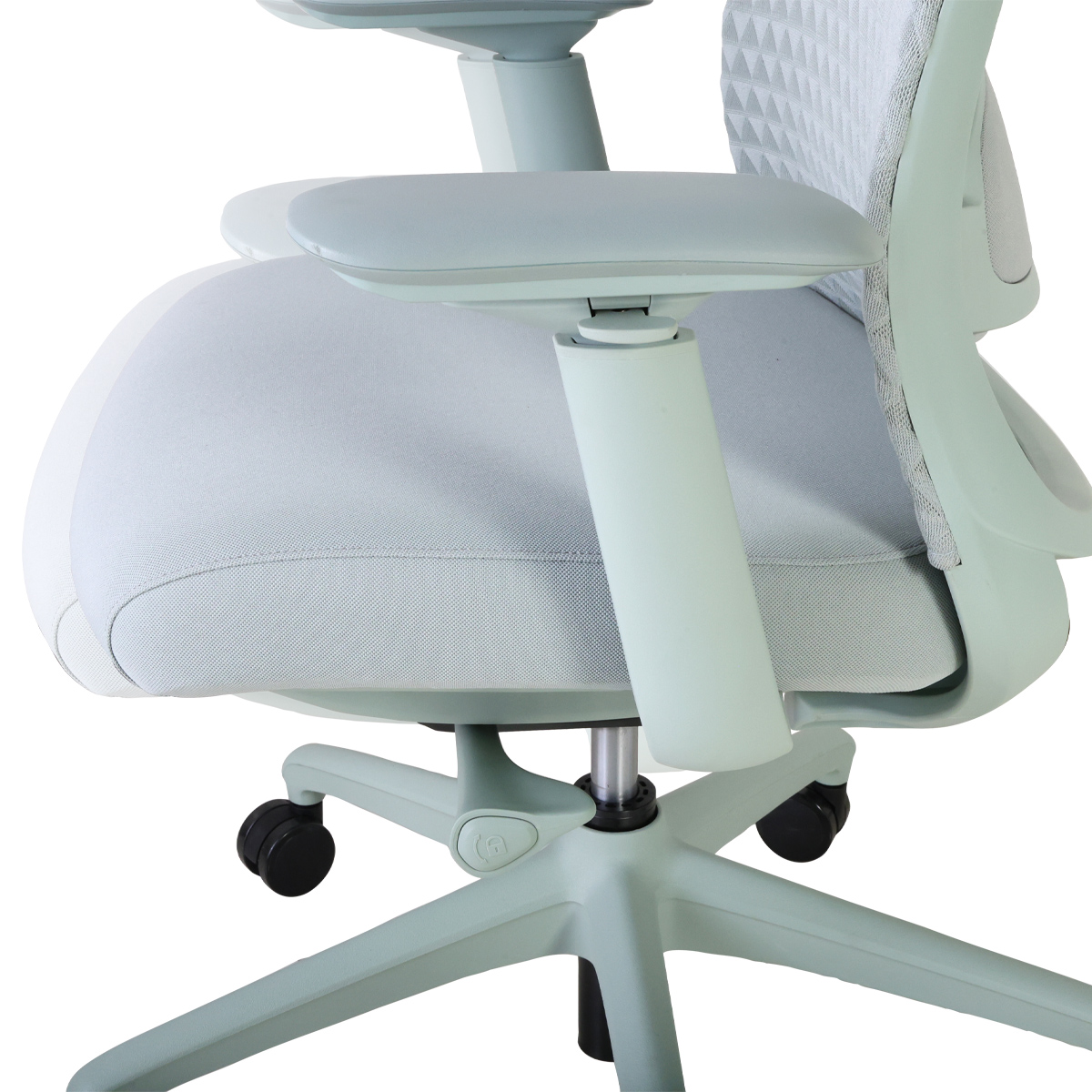 3Dメッシュ加工の凹凸ある張地は独特な肌触りがあり、印象的なワントーンカラーはオフィス空間に上質な明るさと心地よい活気をもたらし、4D可動肘や座奥行き調整などの高機能が快適な姿勢をサポートします。