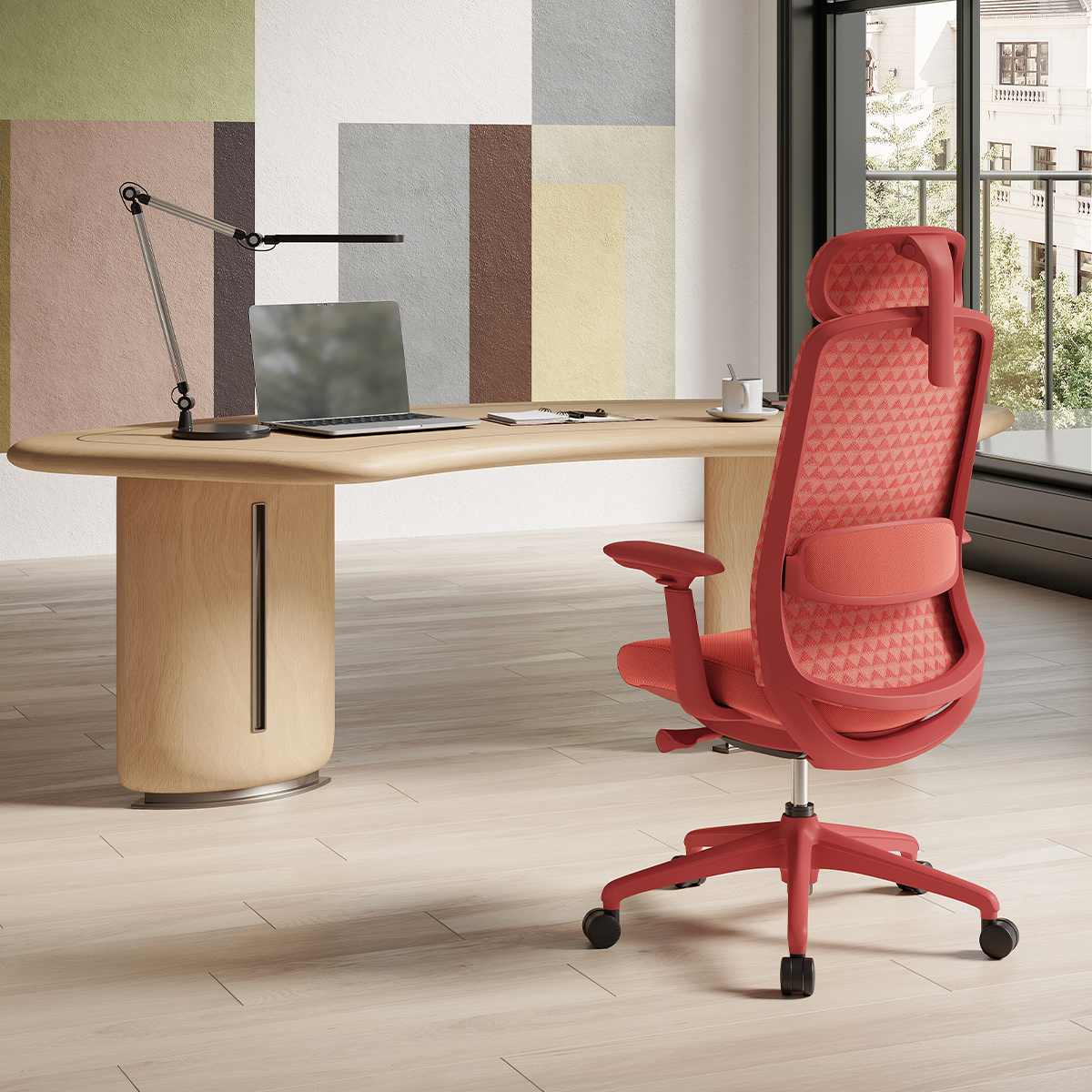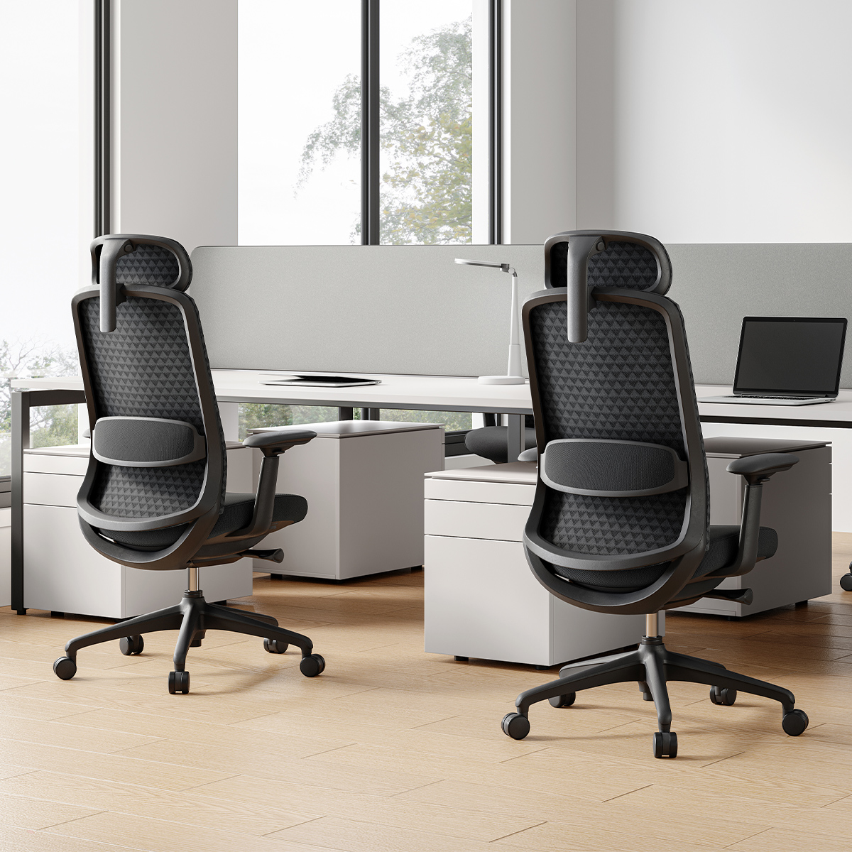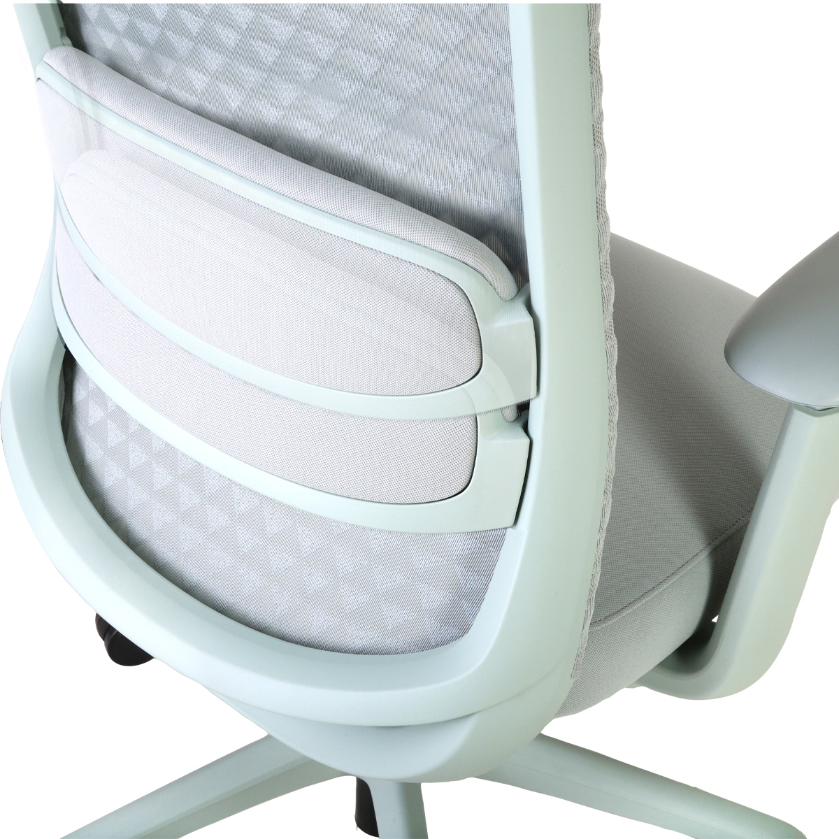 3Dメッシュ加工の凹凸ある張地は独特な肌触りがあり、印象的なワントーンカラーはオフィス空間に上質な明るさと心地よい活気をもたらし、4D可動肘や座奥行き調整などの高機能が快適な姿勢をサポートします。