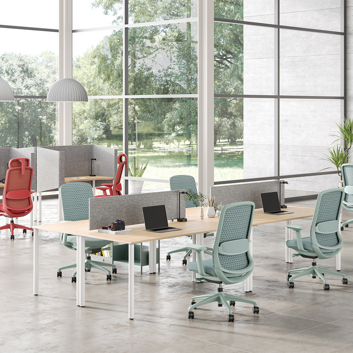 3Dメッシュ加工の凹凸ある張地は独特な肌触りがあり、印象的なワントーンカラーはオフィス空間に上質な明るさと心地よい活気をもたらします。