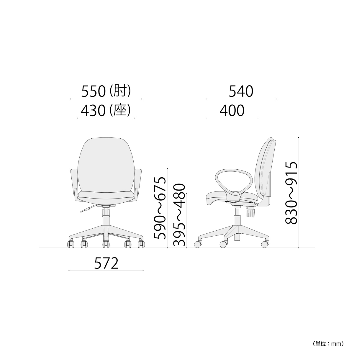 | サイズ | 肘無し:W440×D540×H830-915mm 肘付き:W550×D540×H830-915mm 座面高:395-480mm |