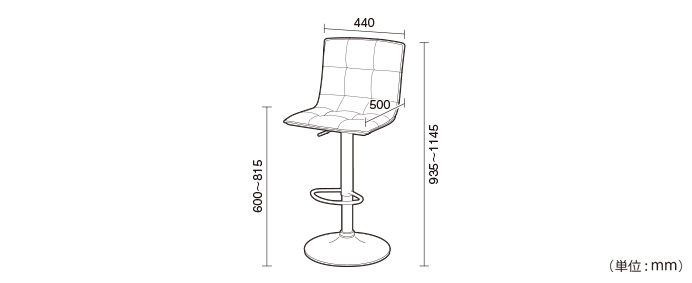 | サイズ | W440×D500×H935-1145mm 座面高:600-815mm |