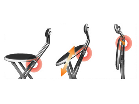 座部後端にあるリングが背もたれパイプをスライドすることで、ワンタッチで安定した開閉操作が可能です。