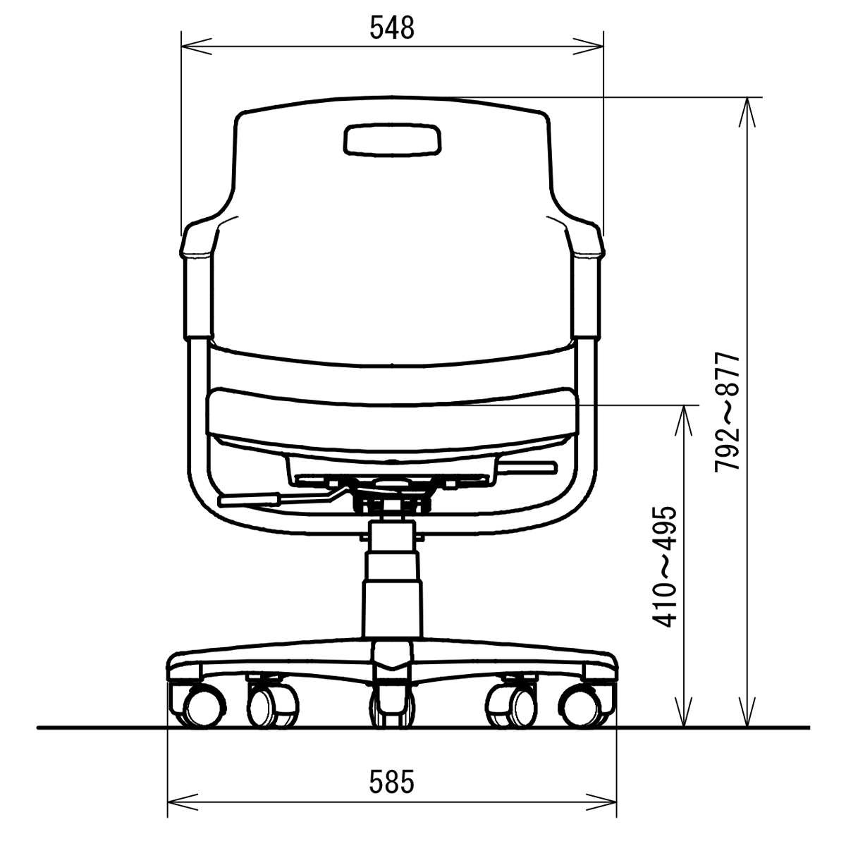 | サイズ | W585×D560×H792-877mm 脚:585mm |