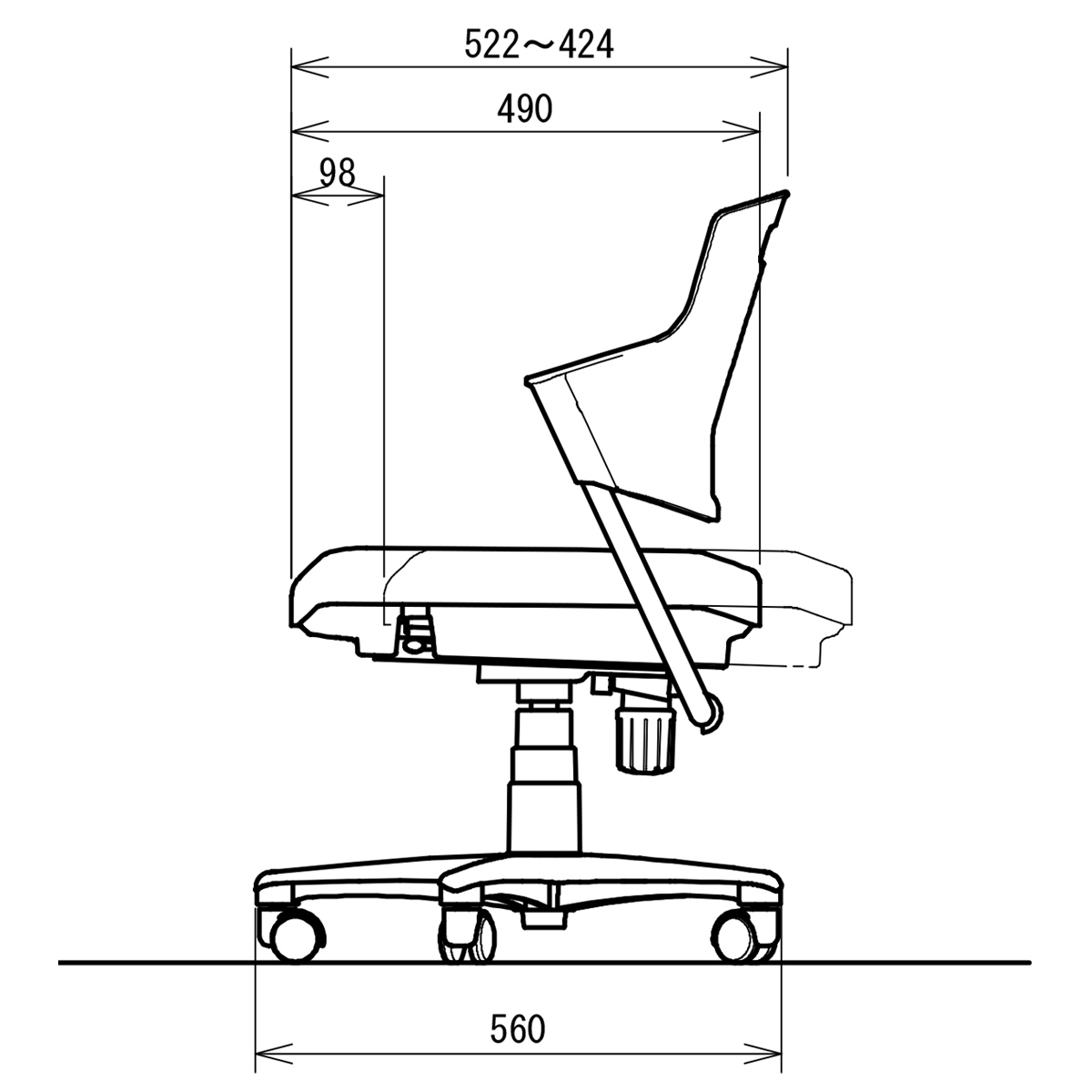 - 座の昇降座の高さ調節が、座裏のレバー操作を行うことによって、簡単にできます。