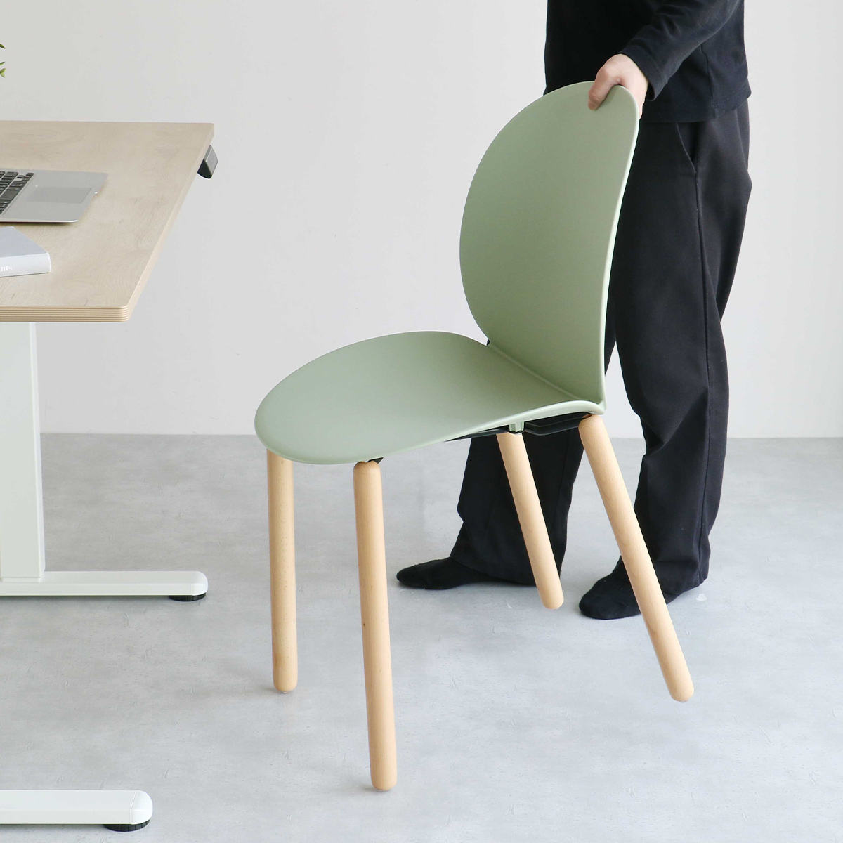曲線型の背もたれは、椅子を引き出すときに自然と手がかかる形状になっており、ちょっとした動作もスムーズに行えます。