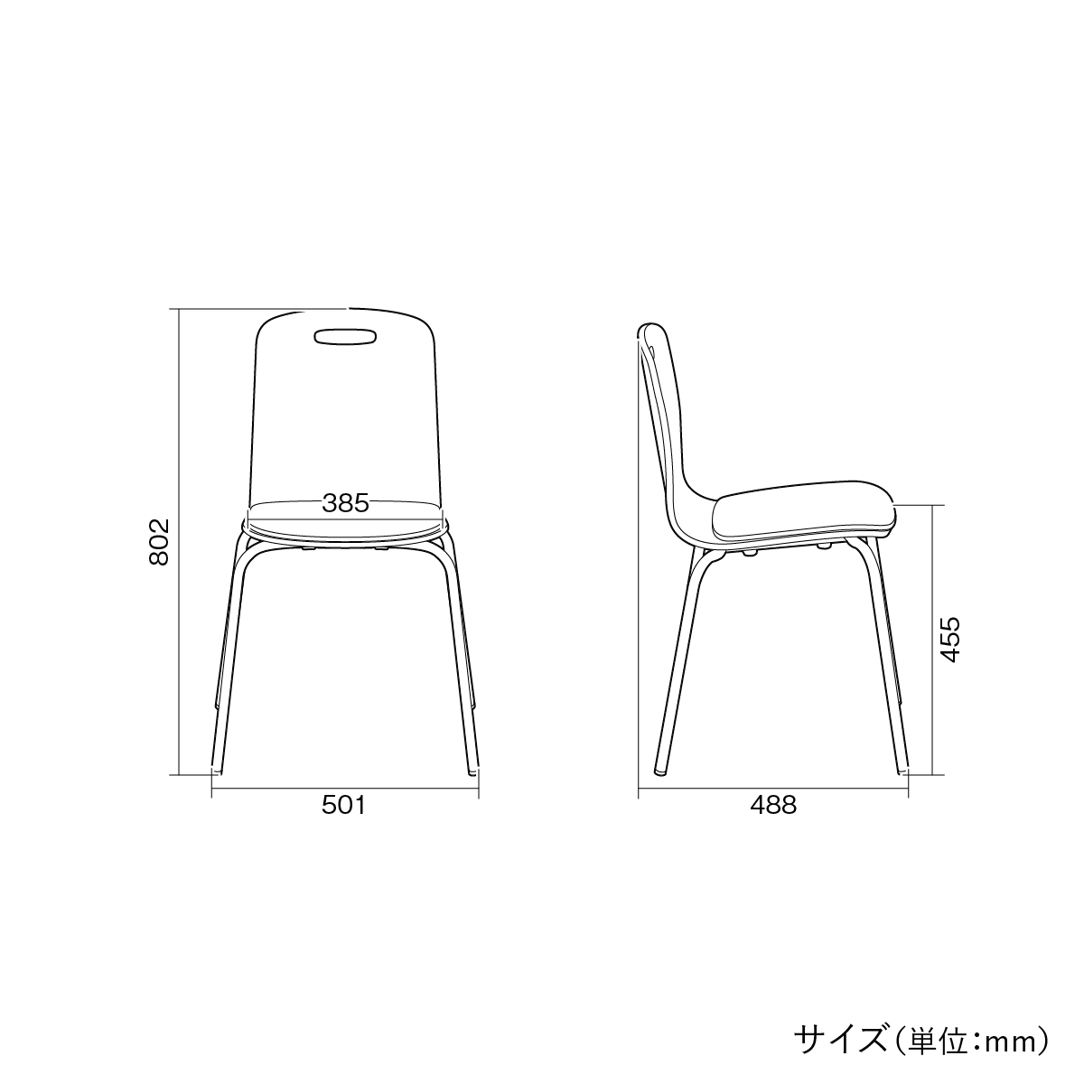 | 材質 | 背・座:合板(高圧メラミン化粧) 脚部:ステンレス 座パッド:PVCレザー、ウレタンフォーム |