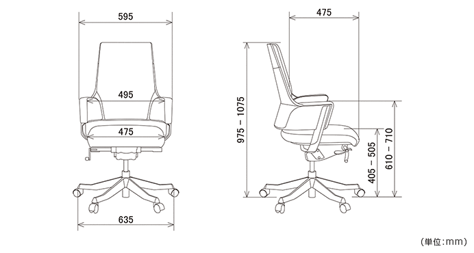 | サイズ | W635×D635×H975-1075mm 座面高:405-505mm |