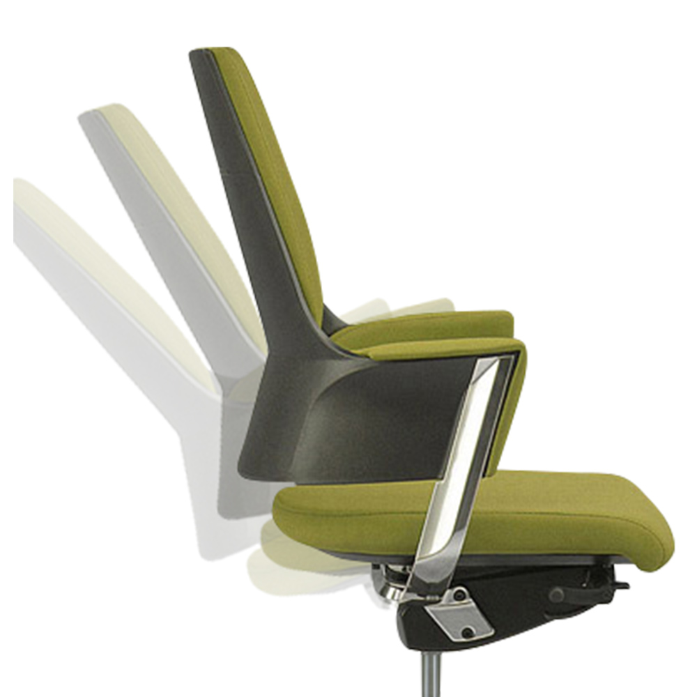 座面と連動して背もたれがリクライニングする「シンクロリクライニング機能」により、リクライニング時に脚を圧迫せず、快適なオフィスシーティングを実現しています。