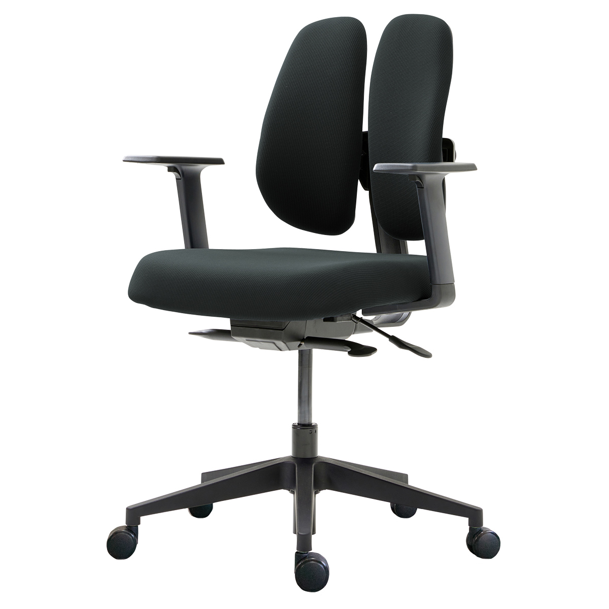 座面の上下昇降、前後のスライドに加え、シンクロロッキングとセルフチルト機構を採用し、幅広い体格の方に座りやすい一台です。