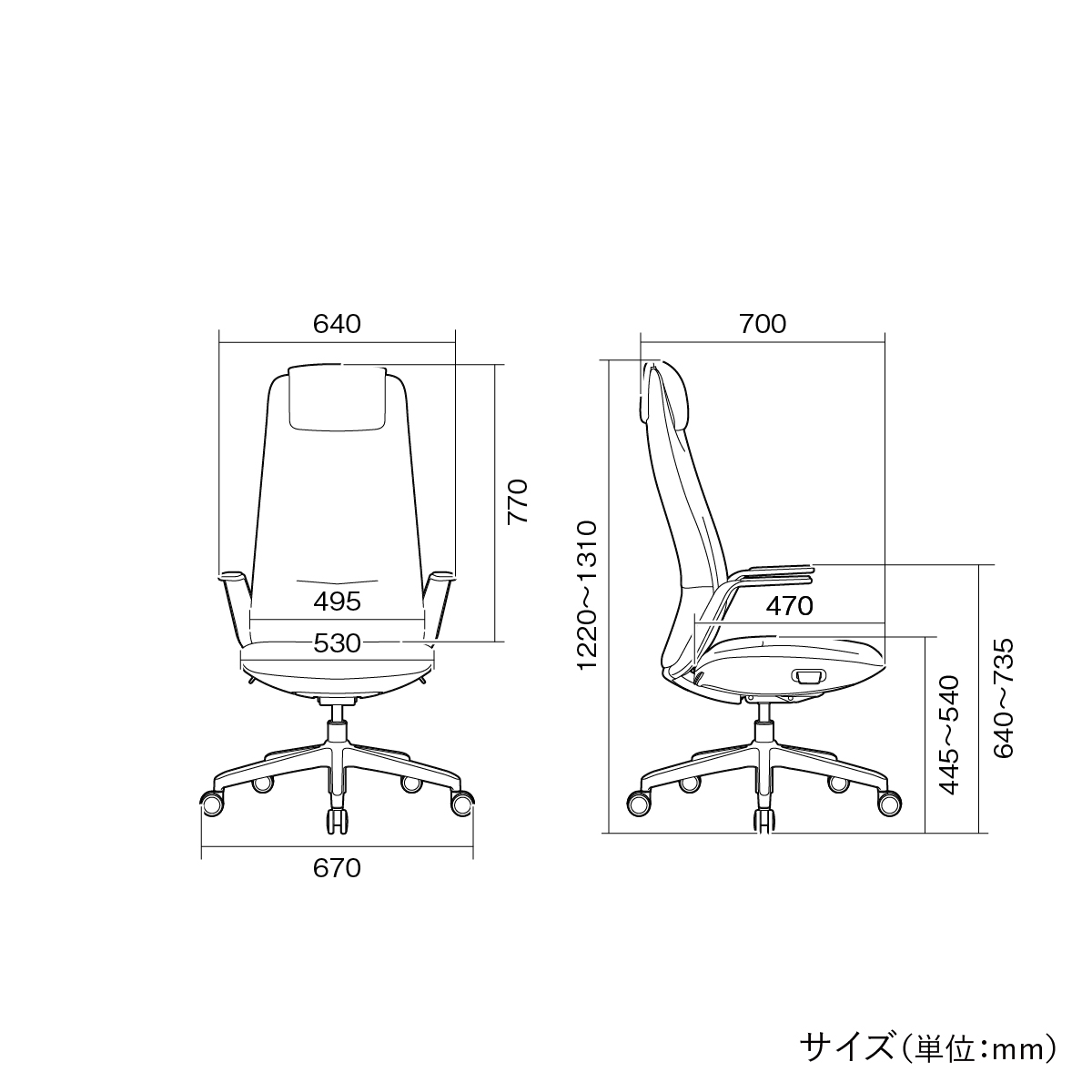 サイズ | W640×D700×H1220-1315mm 座面高:445-540mm |
