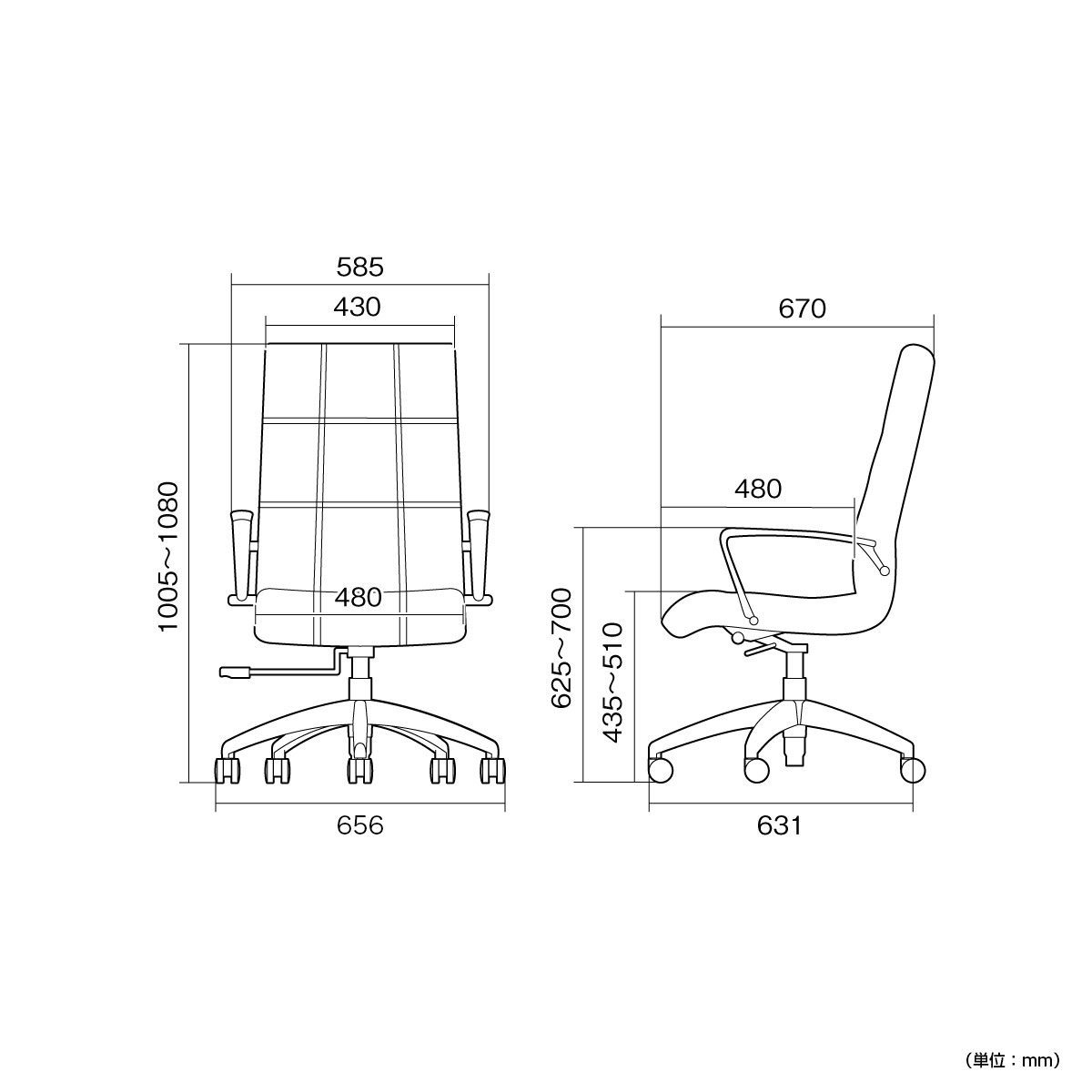 | サイズ | W585×D670×H1005-1080mm 座面高:435-510mm 脚:W656mm |