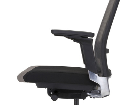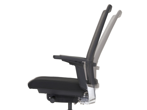 オフィスワークをサポートする、動的な座部と前後スライド機能付き座面を備えた高機能チェアです。