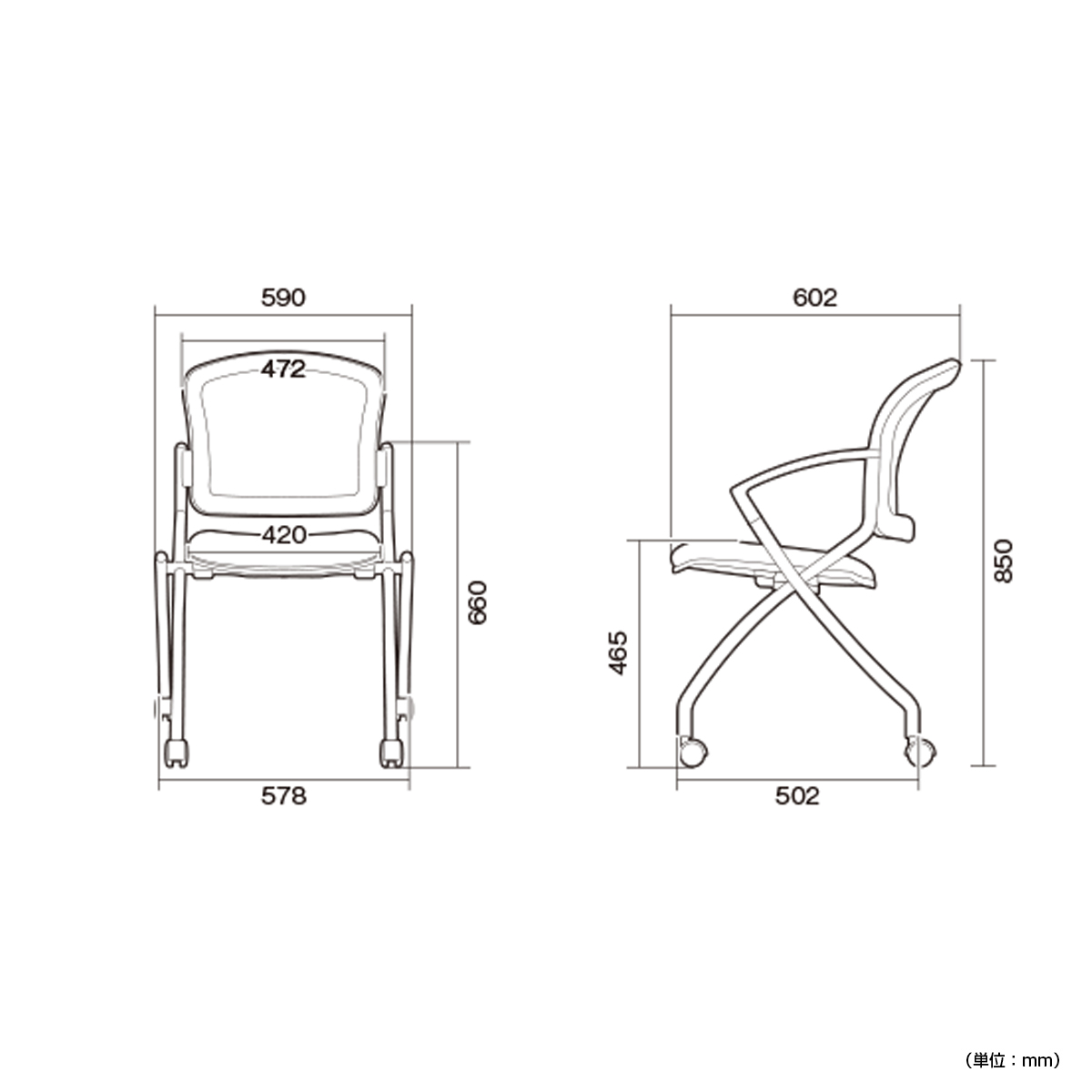 | サイズ | 肘無し:W472×D602×H850mm 肘付き:W590×D602×H850mm 座面高:465mm 脚:W578mm |