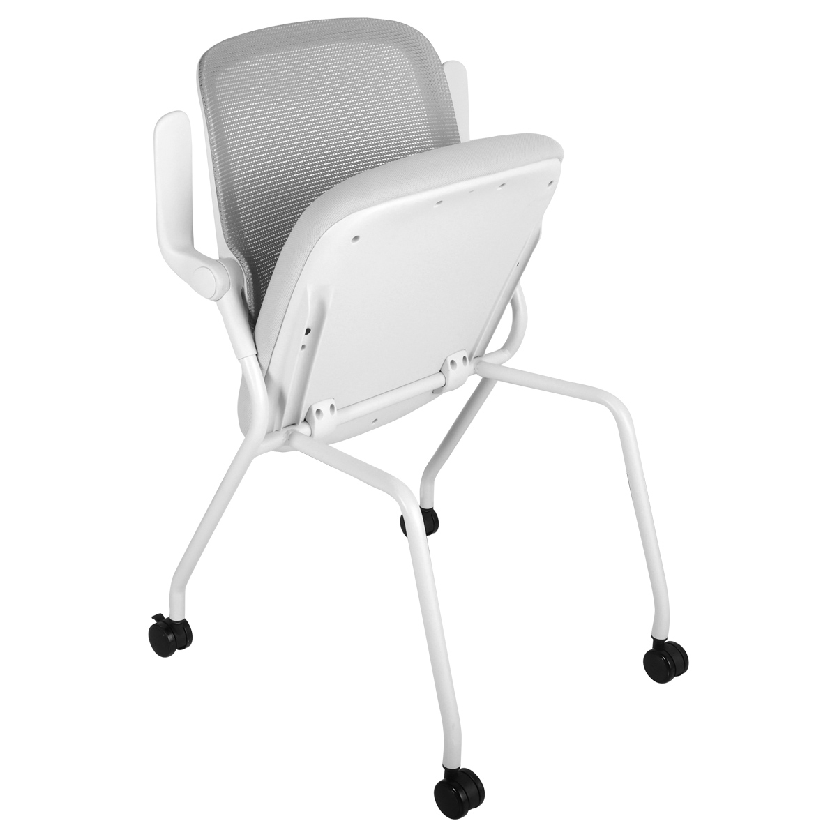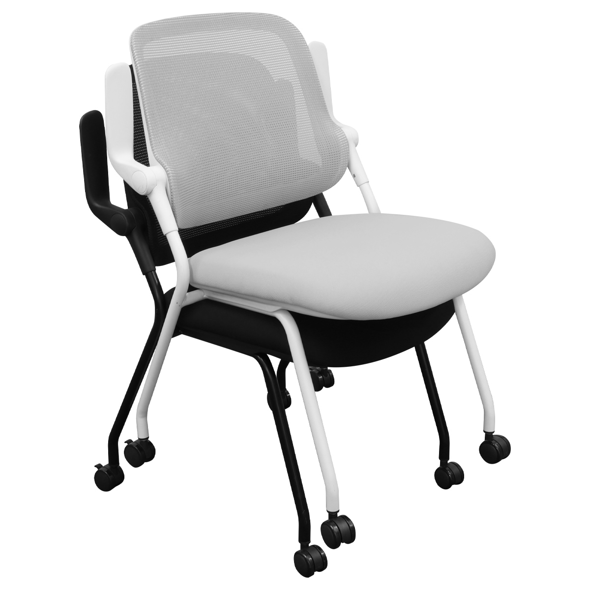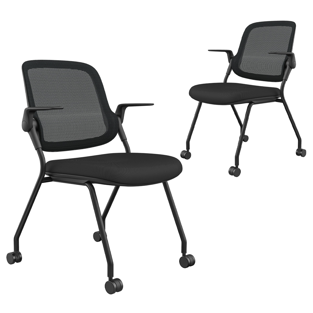 スタッキング・ネスティング収納に対応し、ロータリーアームレストやロッキング機能、通気性の高いメッシュ背など、快適性と省スペース性を両立しながら、座面にはウレタンフォーム、キャスターにはPU素材を採用し、滑らかな移動と快適な座り心地を実現しています。