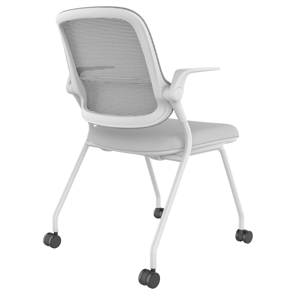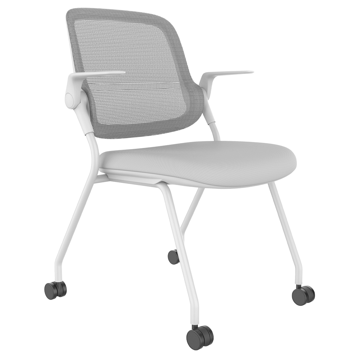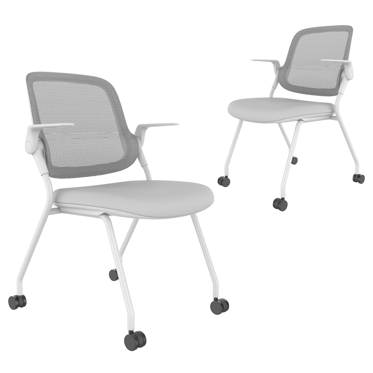 スタッキング・ネスティング収納に対応し、ロータリーアームレストやロッキング機能、通気性の高いメッシュ背など、快適性と省スペース性を両立しながら、座面にはウレタンフォーム、キャスターにはPU素材を採用し、滑らかな移動と快適な座り心地を実現しています。