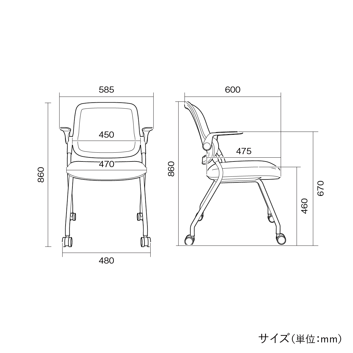 サイズ | W585×D600×H860mm 座面高:460mm |