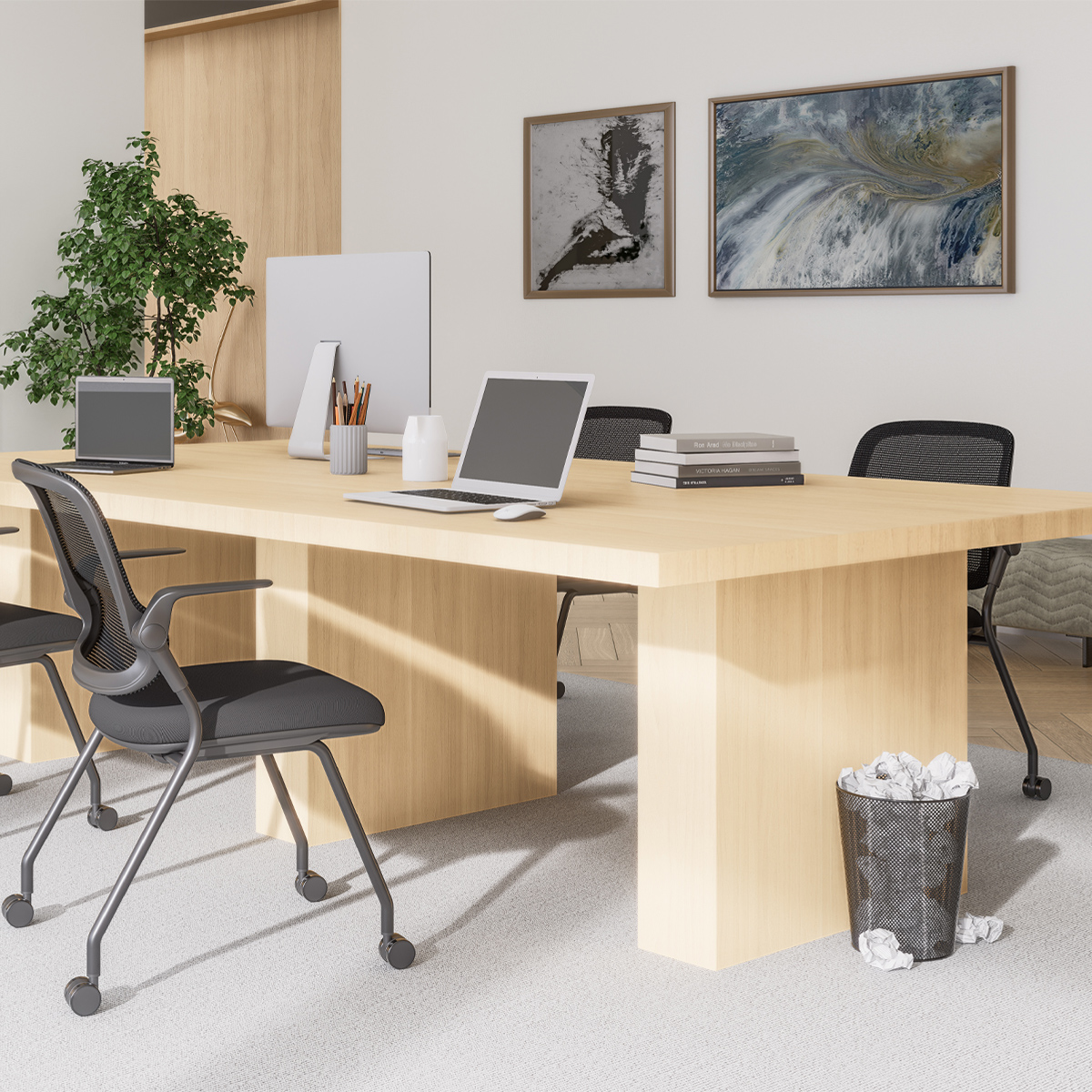 静かで滑らかなポリウレタン製キャスターは、オフィスの床を傷つける心配なく、スムーズな移動を実現。