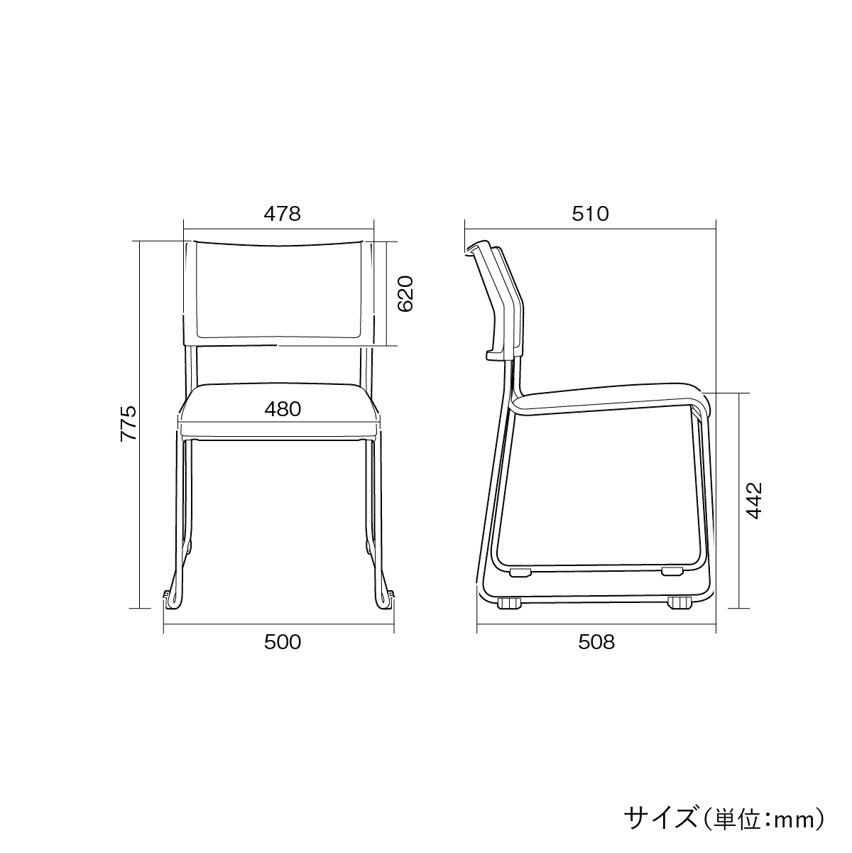 | サイズ | W478×D510×H775mm 座面高:442mm |