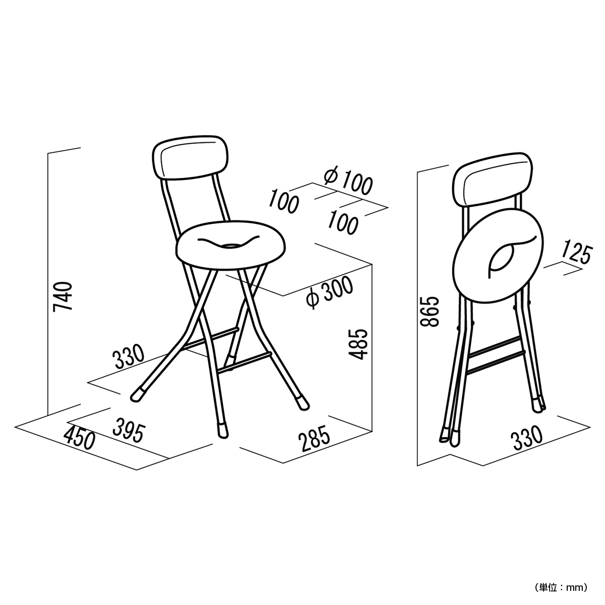 | サイズ | W330×D450×H740mm 座面高:485mm 折り畳み時:W330×D125×H865mm フットレスト:H180mm |