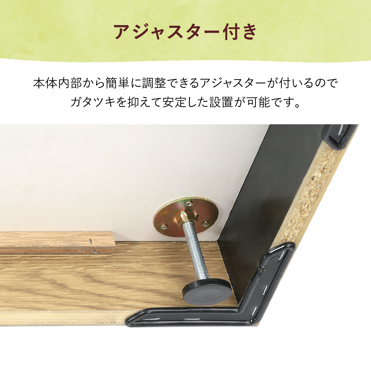 底面には内側から調整できるアジャスターも付いており、設置場所に合わせてガタツキを調整いただけます。