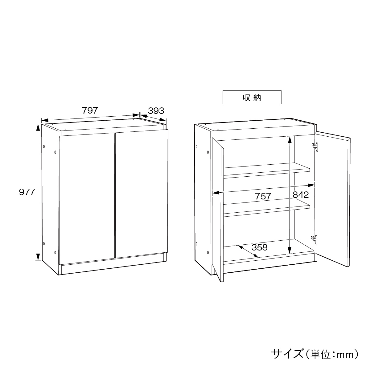 | 内寸法 | W757×D358×H842mm |