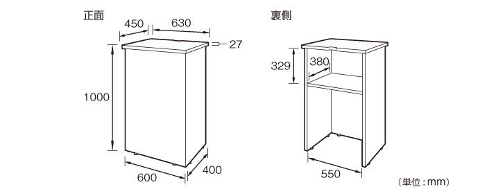 | サイズ | W630×D450×H1000mm |