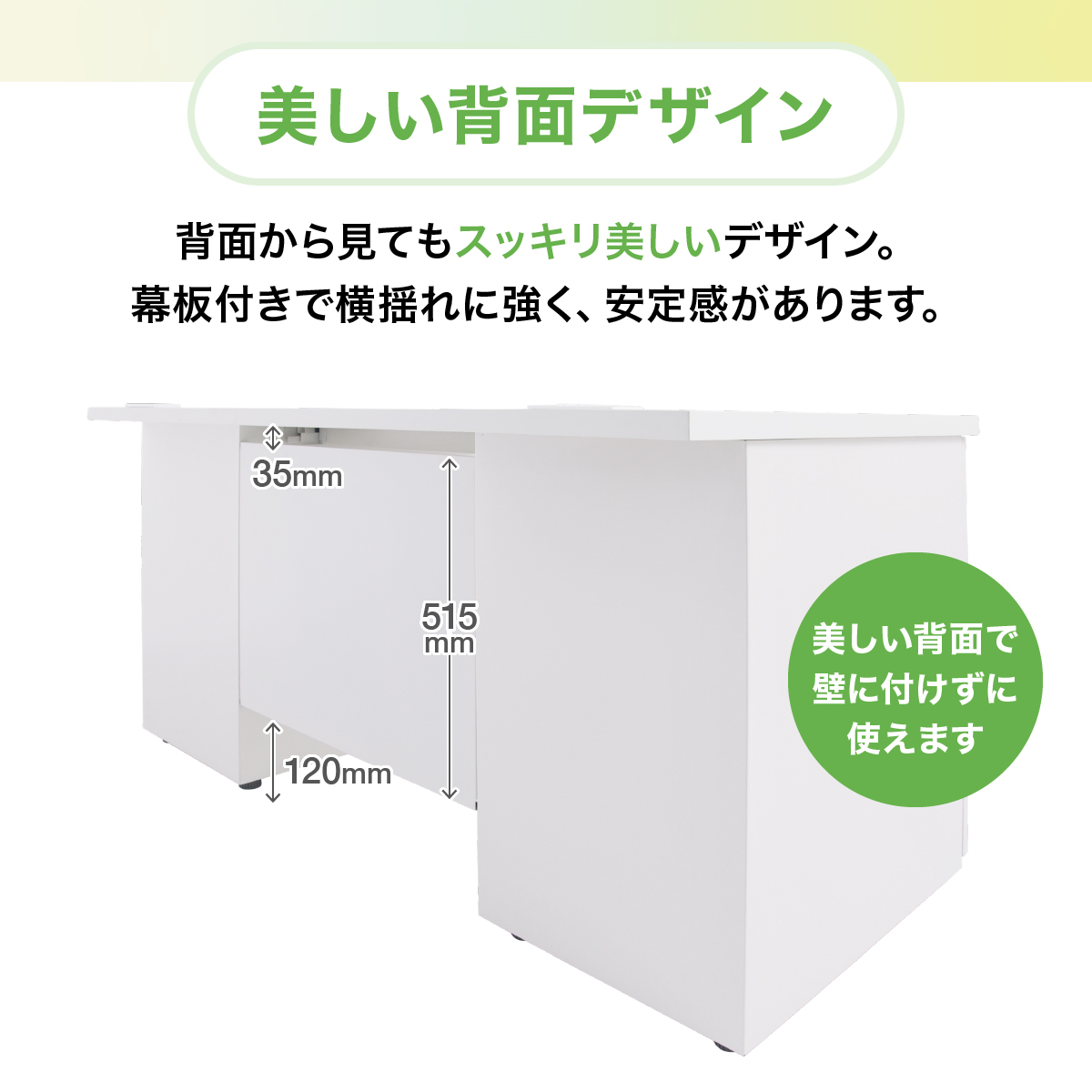 また、幅1400mmのサイズは、向かい合わせで配置した2つ分のデスクの奥行きにぴったりと合うサイズですので、デスクレイアウトの際、マネージメント職の方に利用していただきやすい商品です。